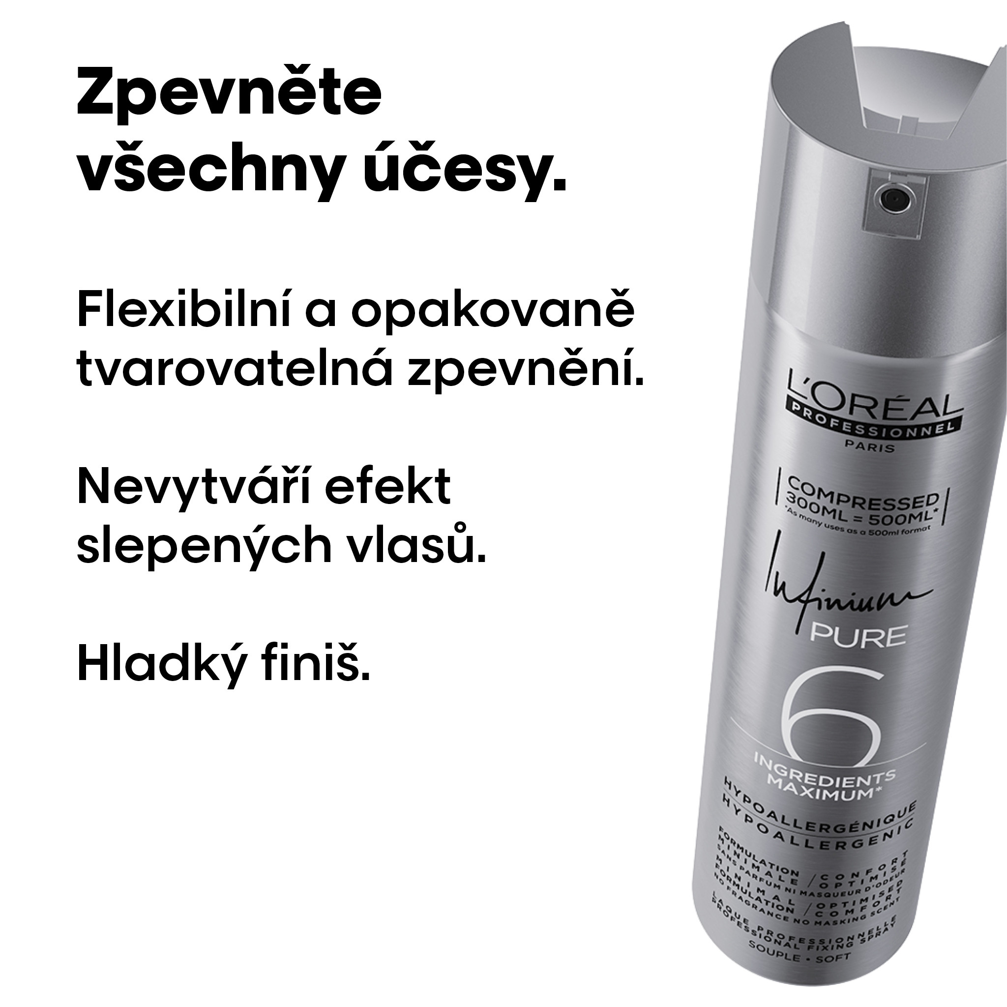 Fedezze fel az Infinium Pure-t, az első illatanyagmentes professzionális hajlakkot, amely természetes illatot ad a hajnak. A mindössze 6 összetevőt tartalmazó, hipoallergén termék optimális komfortérzetet nyújt, és olyan professzionális végeredményt biztosít, amely akár a színpadon is megállja a helyét. A 300 ml-es kiszerelésben kapható Infinium Pure Soft hajlakk lenyűgöző fényt kölcsönöz a hajnak, miközben megőrzi természetes tapintását. Precíz felvitelt biztosító szórófejének köszönhetően a hajlakk célzott alkalmazást és rugalmas fixálást biztosít, így segítségével bármilyen divatos frizura könnyedén megalkotható vagy újraformázható.