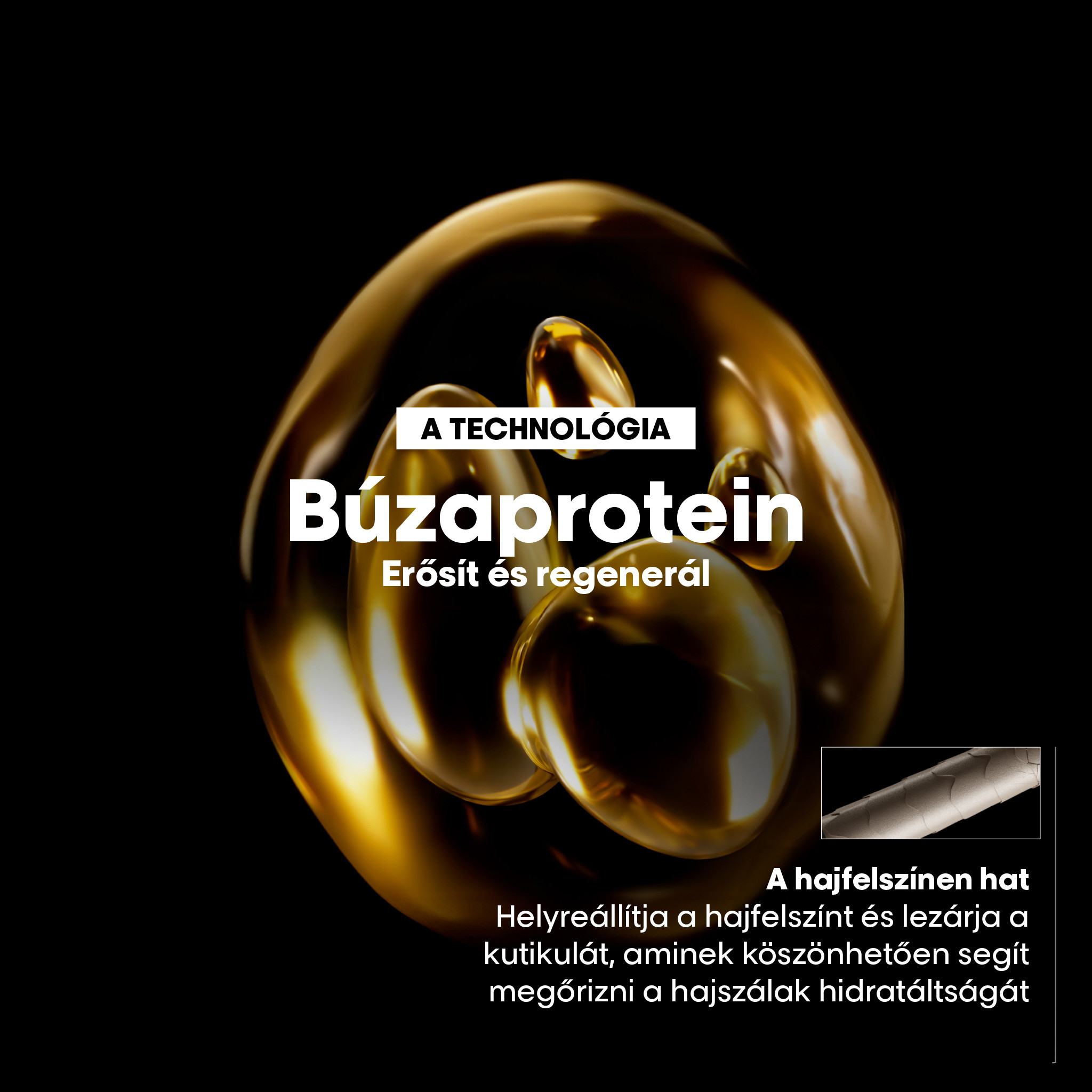 Búzacsíra-olajjal gazdagítva. Egy termék, 10 jótékony hatás: 1-táplálás 2-hajfelszín-megújítás 3-selymes tapintás 4-könnyed érzet 5-könnyebb fésülhetőség 6-kondicionálás 7-kezelhetőség 8-fény 9-védelem 10-sima haj.