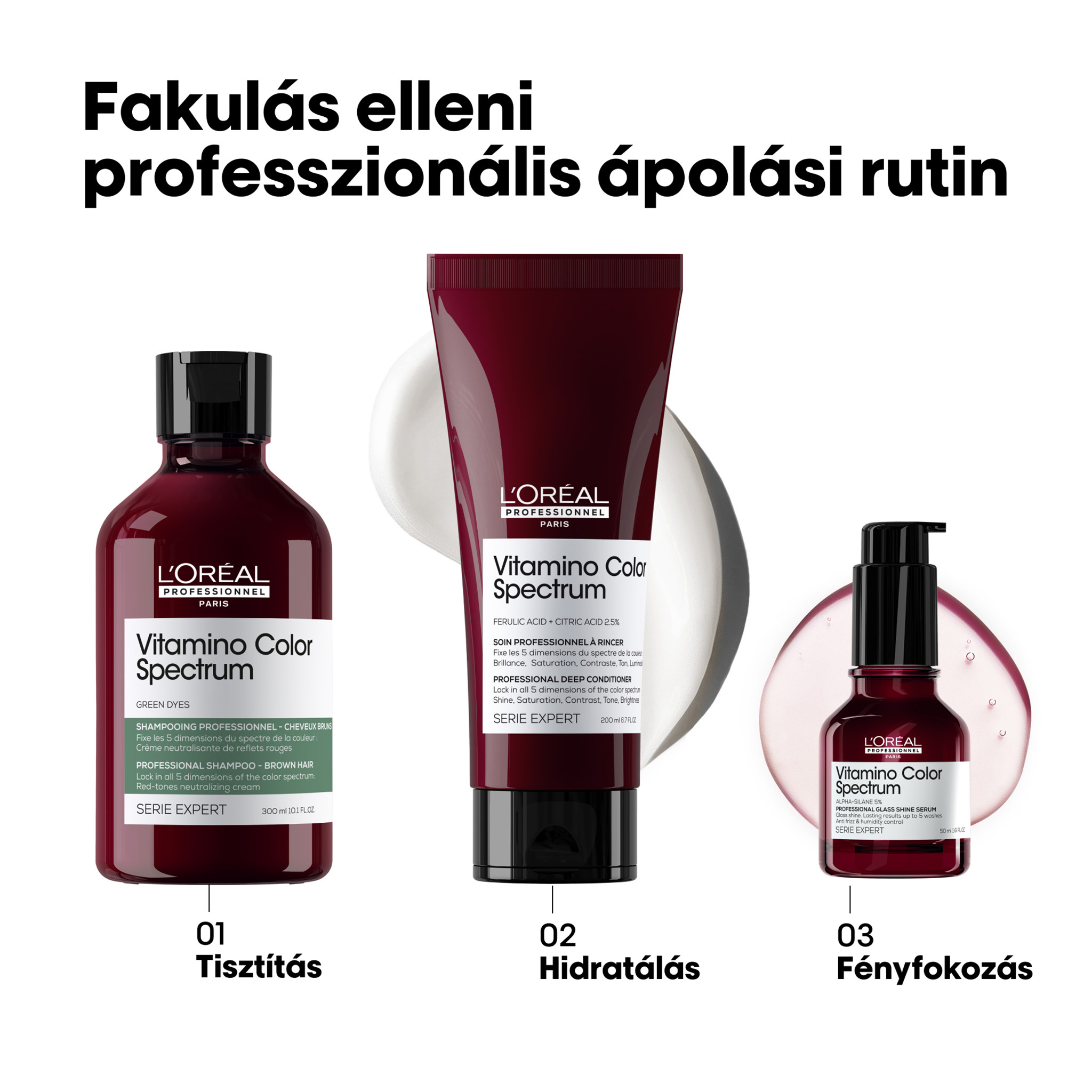 Zöld festékanyagokkal és ápoló hatóanyagokkal gazdagított Vitamino Color Spectrum professzionális színsemlegesítő sampon a nem kívánt vörös árnyalatok ellen a L’Oréal Professionneltől. A krémes, zöld színű termék azonnal semlegesíti a sötétbarna haj szőkítési alapjának nem kívánt vörös pigmentjeit. Tisztítja és táplálja a hajat.